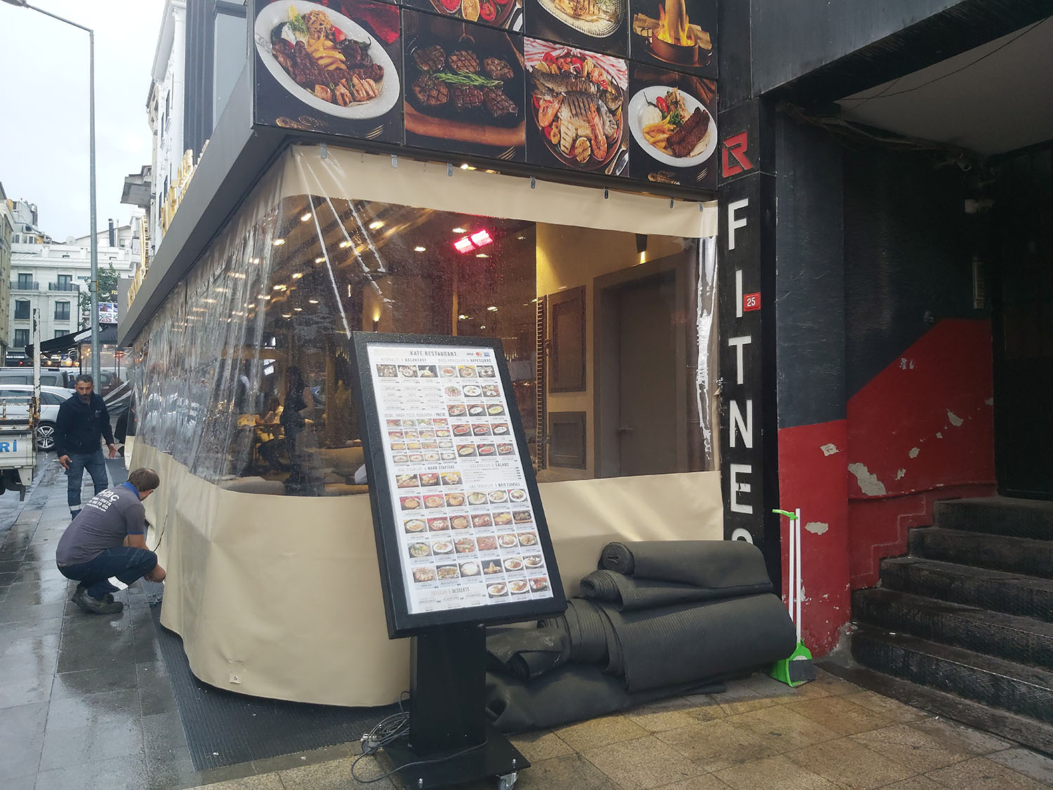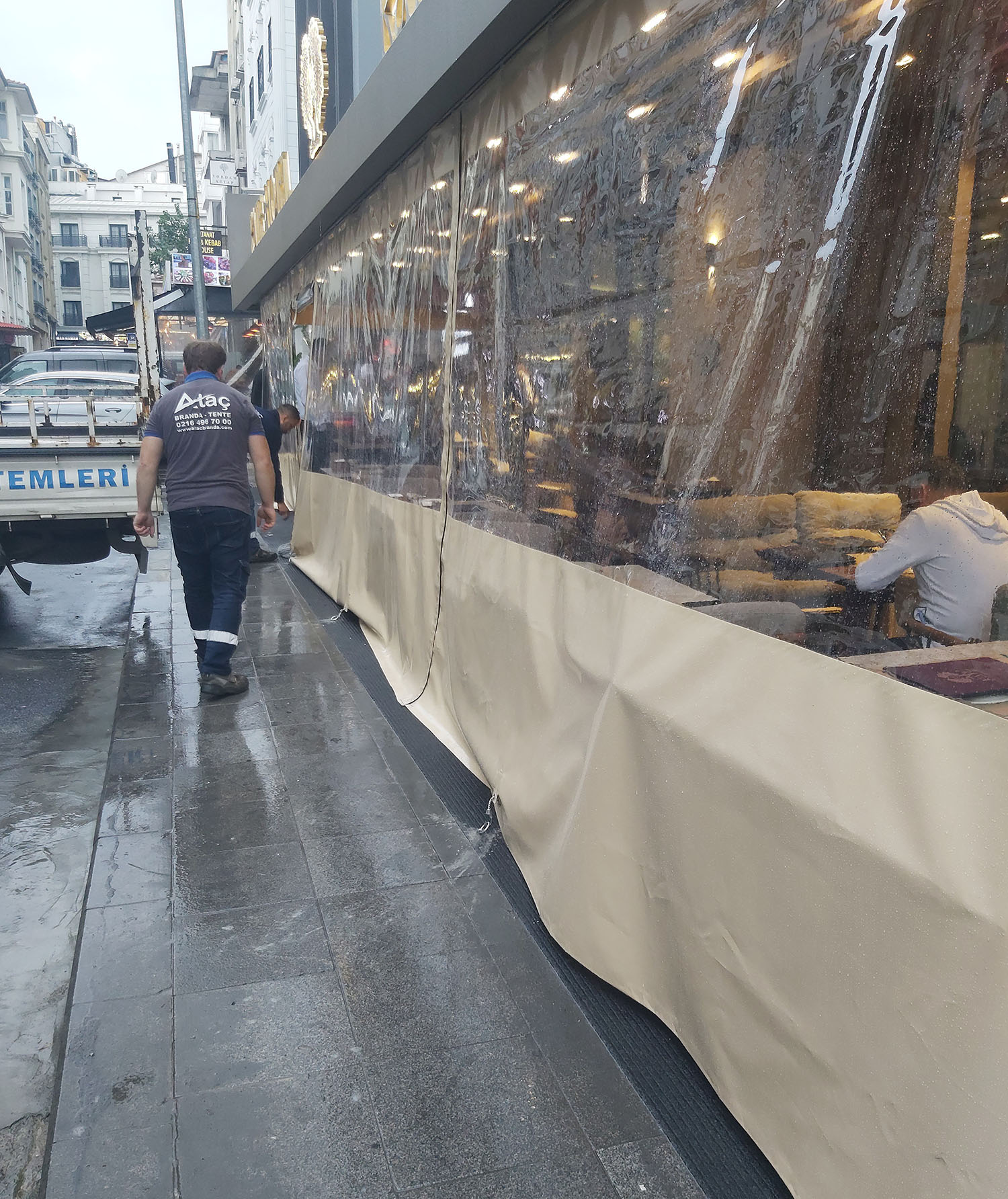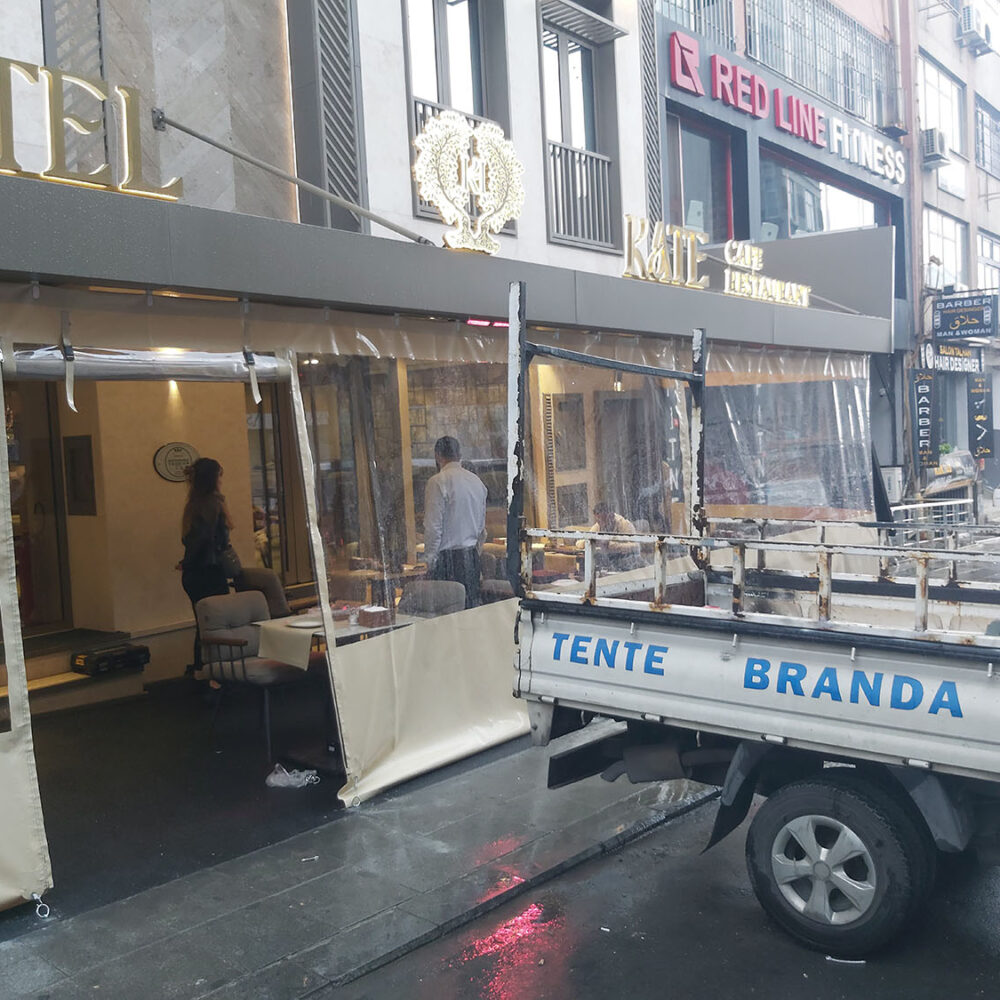 Restoranlarda veya otellerde kayar perdeler, özel etkinlikler için bölme duvarları oluşturarak alanların esnek kullanımına olanak tanır. Aynı zamanda mekanın genel estetiğine katkıda bulunarak konuk deneyimini zenginleştirir.