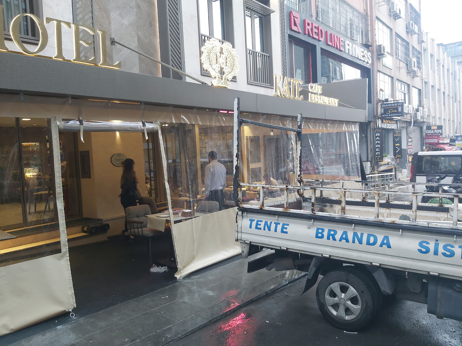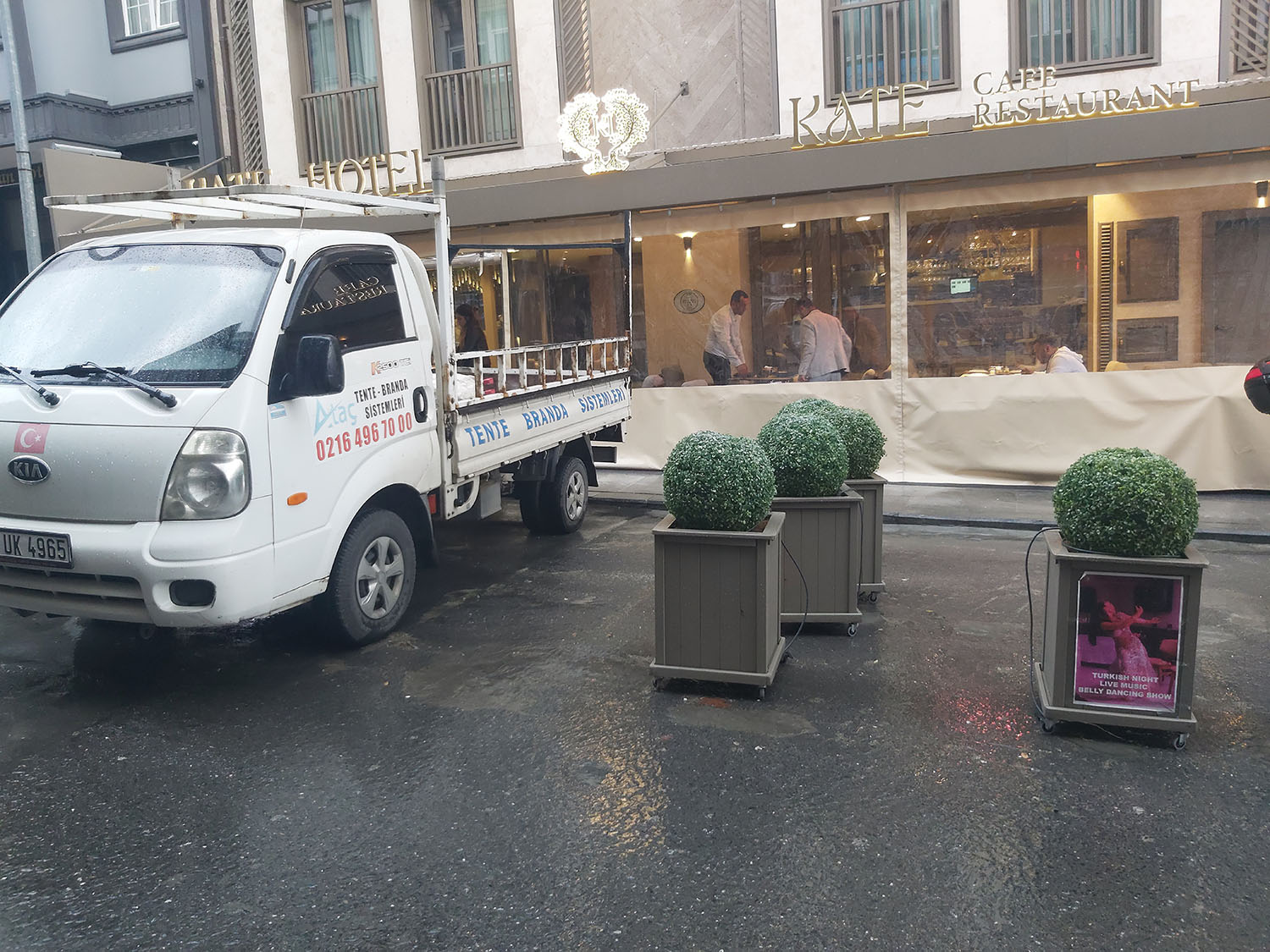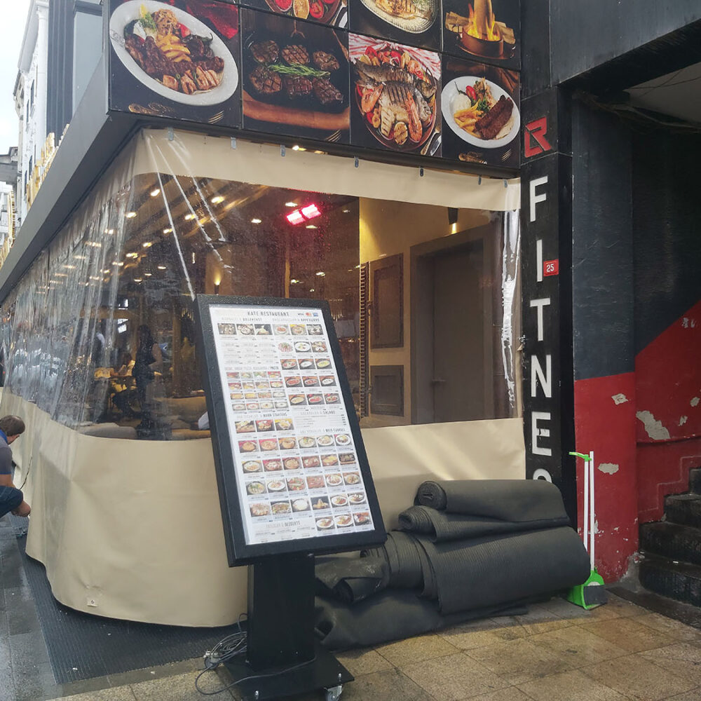 Restoranlarda veya otellerde kayar perdeler, özel etkinlikler için bölme duvarları oluşturarak alanların esnek kullanımına olanak tanır. Aynı zamanda mekanın genel estetiğine katkıda bulunarak konuk deneyimini zenginleştirir.